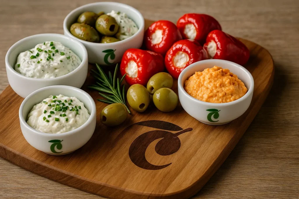 Frischkäsecremes, Antipasti und Oliven – sorgfältig ausgewählt, liebevoll verfeinert und mit Freude serviert.